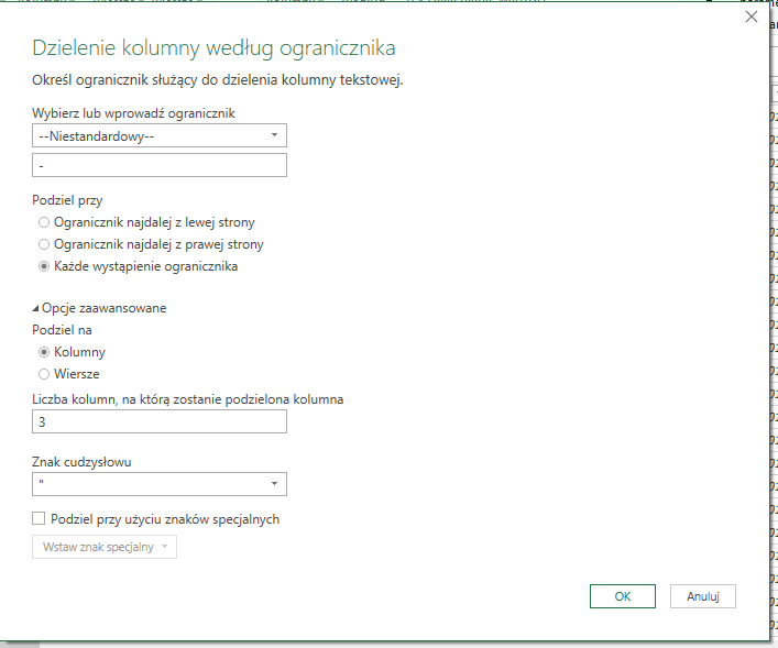 Pułapka nr 7 – Podział kolumn według ogranicznika
