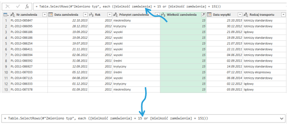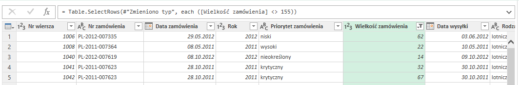 Po zastosowaniu filtrów w Edytorze zapytań należy sprawdzić pasek formuły i upewnić się, że filtr został wykonany właściwie – szczególnie przy filtrze wykluczającym, który zachowuje się czasem jak filtr uwzględniający tylko wartości, które chcemy wykluczyć.