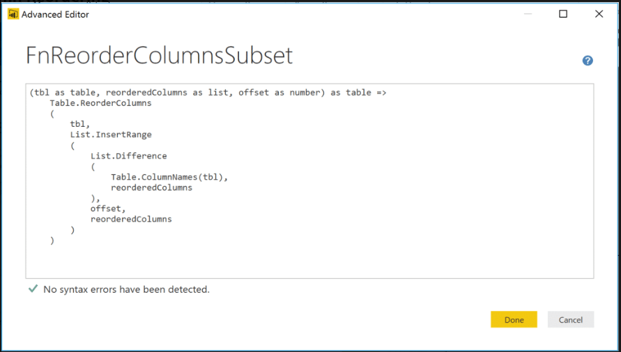 Zmiana kolejności kolumn w edytorze tworzy wzór, który odnosi się do wszystkich kolumn w tabeli. Jeżeli brakuje jednej z kolumn, odświeżenie danych się nie powiedzie. Aby uniknąć tej pułapki i zmienić kolejność kolumn, możemy wykorzystać zaawansowaną funkcję zapytania.