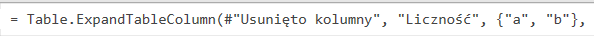 = Table.AddColumn(#”Dodano kolumnę niestandardową”, „Niestandardowe”, each „a”)