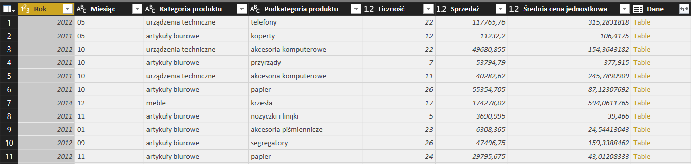 Przygotowałem też zadanie bonusowe pokazujące, że w Power Query można procesować dane różnymi ścieżkami, a później łączyć je w jeden zbiór. Przykład bonusowy polegał na oddzielnym procesowaniu danych, które generowały błędy.