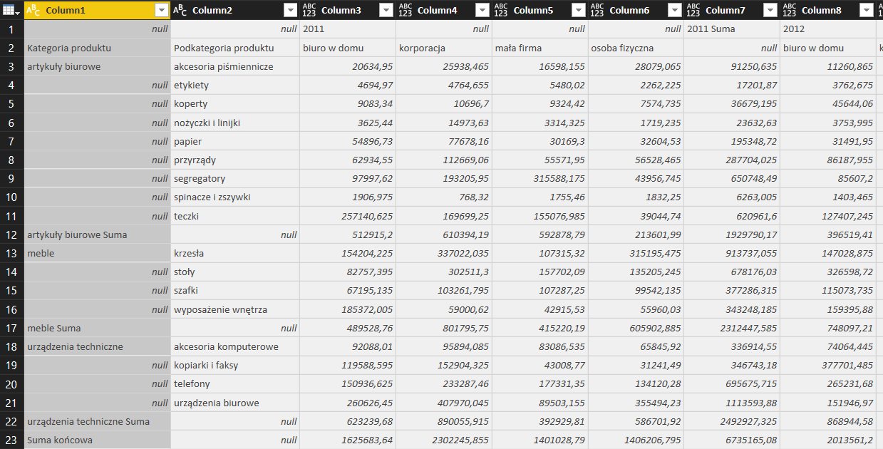 Transformacja 1: Unpivot
