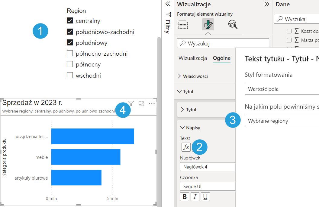 3 przykłady użycia nowego podtytułu (ang. subtitles) w nagłówku wykresu Power BI