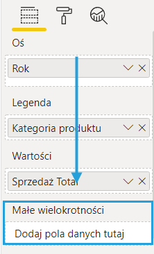 Małe wielokrotności są dodatkową półką dostępna w Power BI w sekcji Wizualizacje.