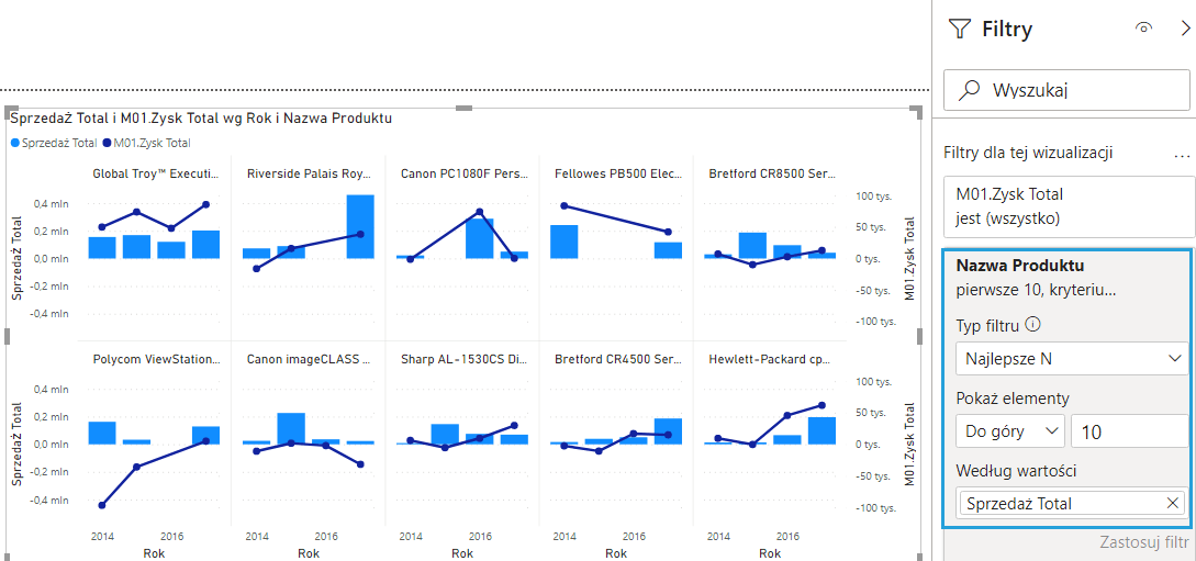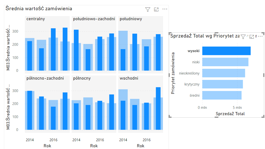Można ją też znaleźć w niektórych wizualizacjach niestandardowych, o czym pisałem zanim małe wielokrotności pojawiły się domyślnie w Power BI w artykule o tym, jak wstawić wykres panelowy w Power BI.