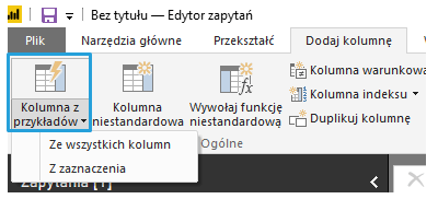 Funkcję można znaleźć w Edytorze zapytań > Dodaj kolumnę > Ogólne > Kolumna z przykładów.