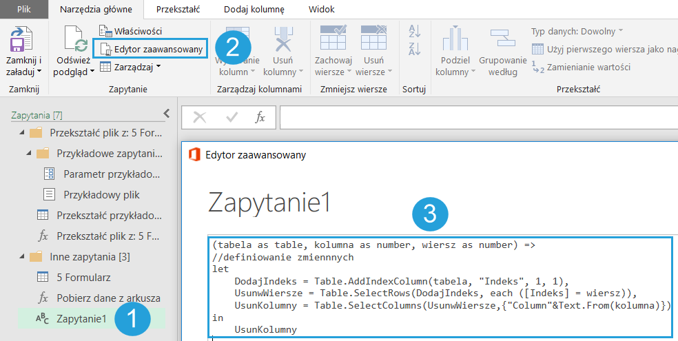 UsunKolumny = Table.SelectColumns(UsunwWiersze,{"Column"&Text.From(kolumna)})