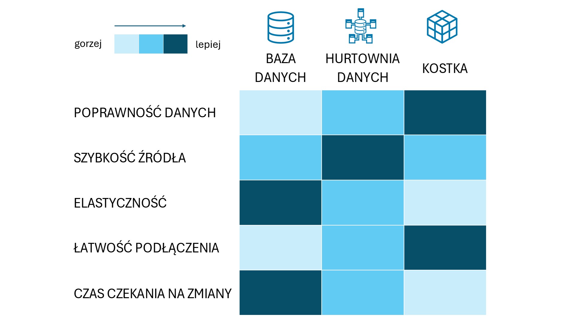 Czym się różnią Baza danych, Hurtownia danych i Kostka?