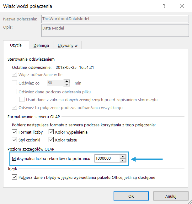Problem: Tylko 1000 wierszy pod tabelą przestawną na modelu danych