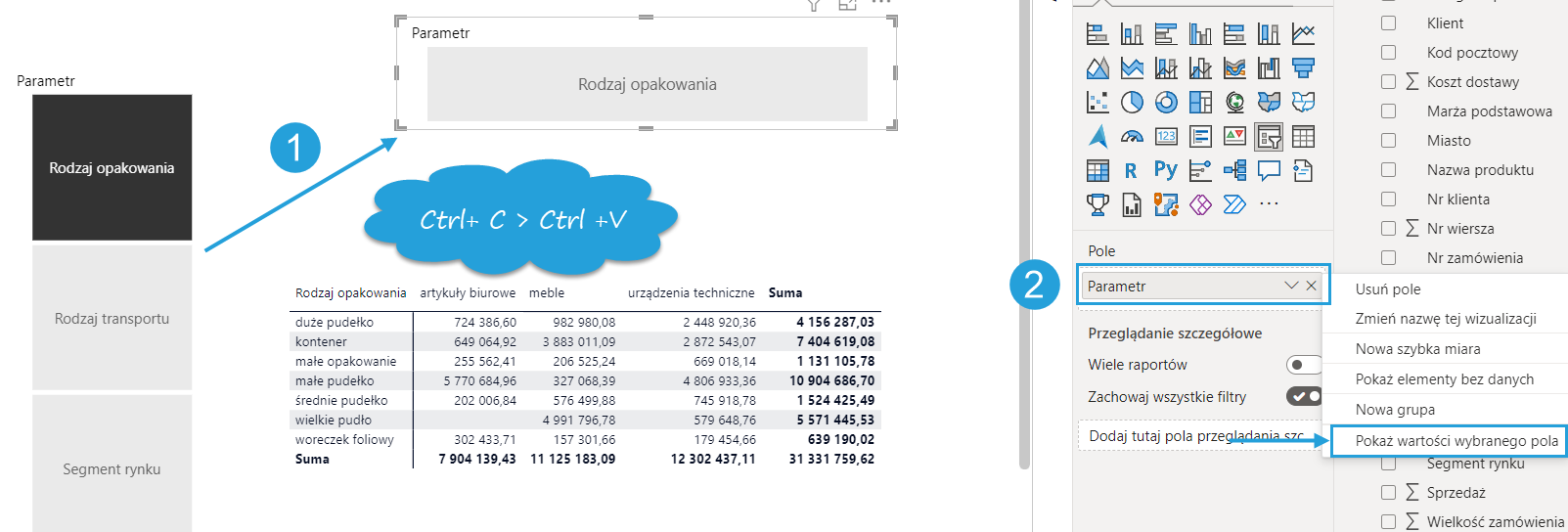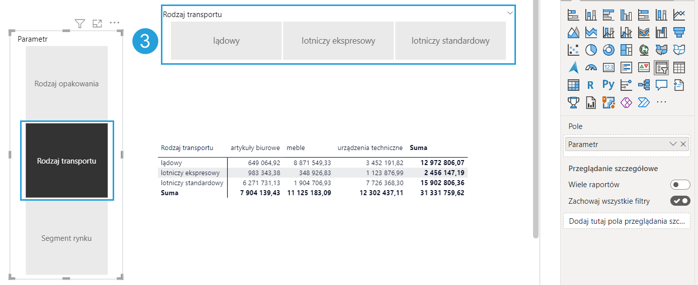 Dynamiczne fragmentatory na parametrach pola w Power BI