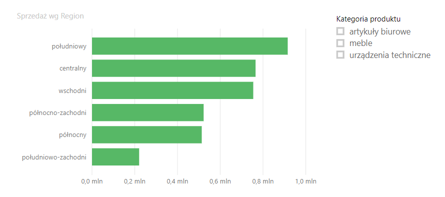 Tytuł wykresu = "Sprzedaż po regionach dla wybranej kategorii: "&SELECTEDVALUE(dane[Kategoria produktu];"wiele")