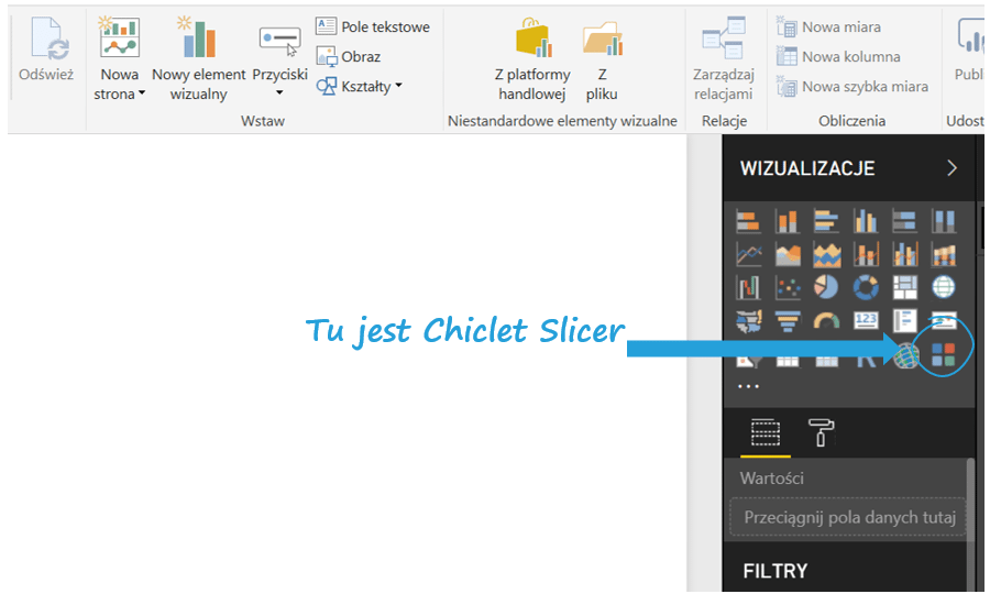 Pojawi się nowa ikonka w możliwych wizualizacjach. To właśnie Chiclet Slicer!
