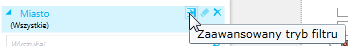 Zaawansowane ustawienia filtru włączamy przy pomocy strzałki w prawym górnym rogu pola z nazwą obiektu.