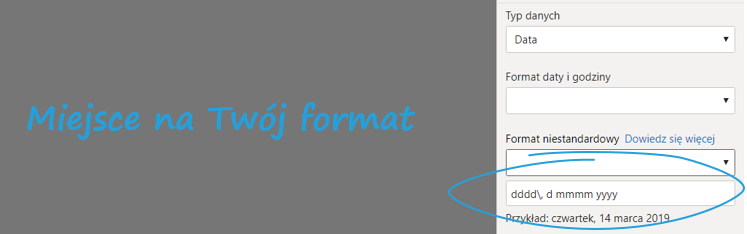 Przykładowo zamieńmy miejscami słowny opis dnia tygodnia i datę.