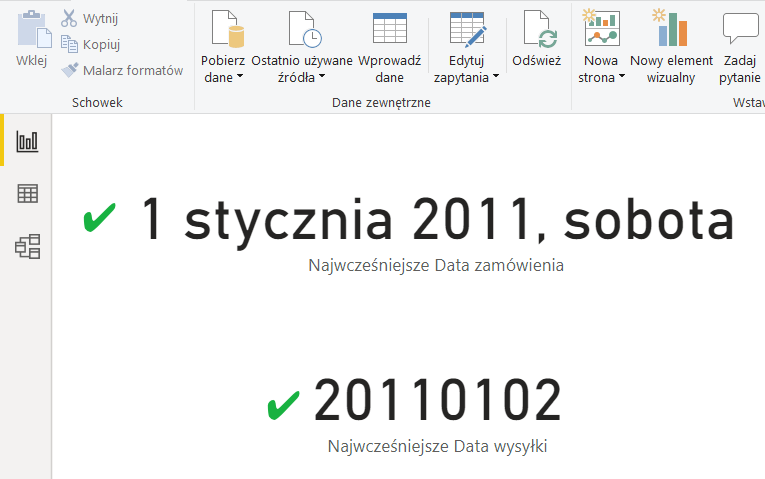 Format kolumny zmienił się, ale zmiany można wprowadzać także na miarach wyklikiwanych i pisanych samodzielnie na modelu danych.