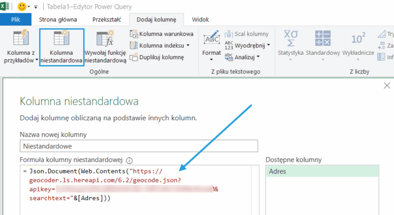 Geokodowanie funkcja Webservice Excel 2013