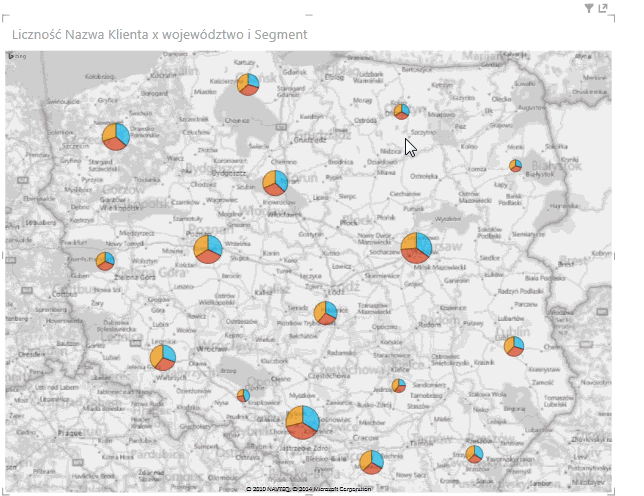 Na pierwszy rzut oka rozwiązanie zastosowanie w PowerView wydaje się być lepszym niż te z wykresu przestawnego – podzielenie tylko jednego regionu na oddziały może sugerować odbiorcy, że wszystkie kawałki wykresu są równoważne, podczas gdy w rzeczywistości oczywistym jest, że oddział będzie miał mniej klientów niż rejon. Słowem – źle zastosowany wykres przestawny może wprowadzać interpretatora w błąd. Z drugiej strony pozwala na większa ingerencję użytkownika w wygląd wykresu, co jest zjawiskiem pozytywnym. Przy zastosowaniu filtrowania wykresu przestawnego możemy uzyskać identyczny efekt końcowy identyczny jak ten z PowerView, nie działa to jednak niestety w drugą stronę.