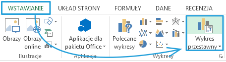 Teraz mając zaznaczoną aktywną komórkę tabeli przestawnej klikamy WSTAWIANIE -> Wykres przestawny: