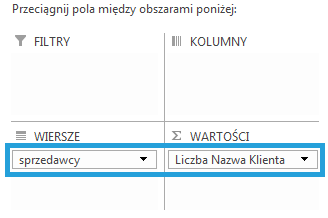 W polach tabeli przestawnej do właściwego obszaru (zazwyczaj będzie to pole Wiersze), umieszczamy odpowiednie kolumny w hierarchicznym porządku. W obszarze Wartości umieszczamy to, co ma nam pokazywać wykres w odniesieniu do danych w polu Wiersze: