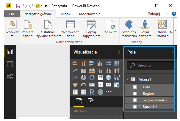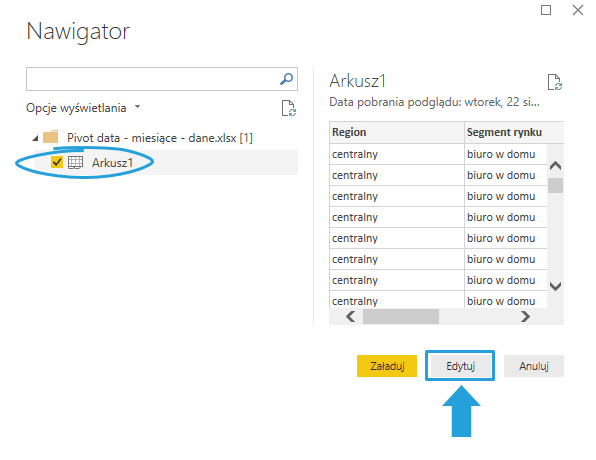 Aby dane załadować do Power BI i móc je przekształcać, na początku należy wykonać te same kroki :