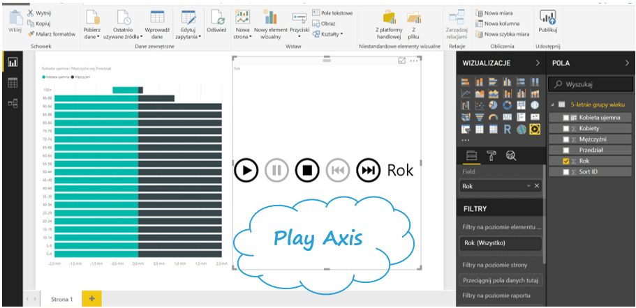 Jak pokazał Hans Rosling, którego film zawsze pokazuję na szkoleniach z Power BI i wizualizacji danych, nie zawsze statyczne dane najlepiej opowiedzą naszą historię. Czasem potrzebujemy ożywić swój obraz, żeby nadać dramaturgii naszym danym. W takich sytuacjach przyda się dobre narzędzie (takie jak Power BI) i oś odtwarzania, czyli niestandardowa wizualizacja Play Axis.
