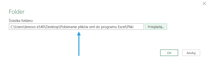 Podajemy ścieżkę katalogu z plikami i klikamy OK.