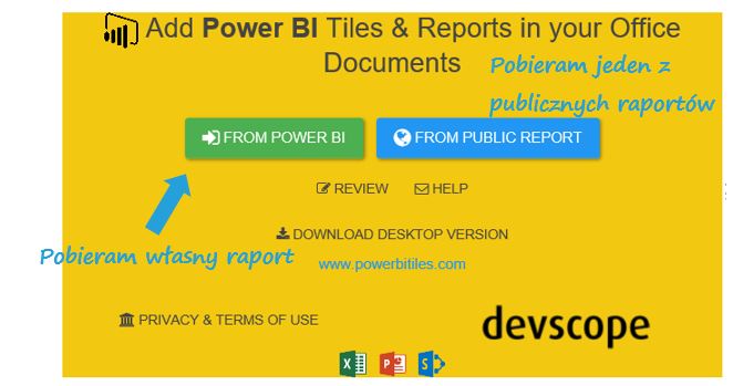 Power BI Tiles to dodatek do programu PowerPoint oferowany komercyjnie przez firmę DevScope. Jego koszt zaczyna się od 49€ za użytkownika (opłata jednorazowa) i jest to jedyny dodatek, który pozwoli zamienić Twoją prezentację PowerPoint w żywą analizę Power BI.
