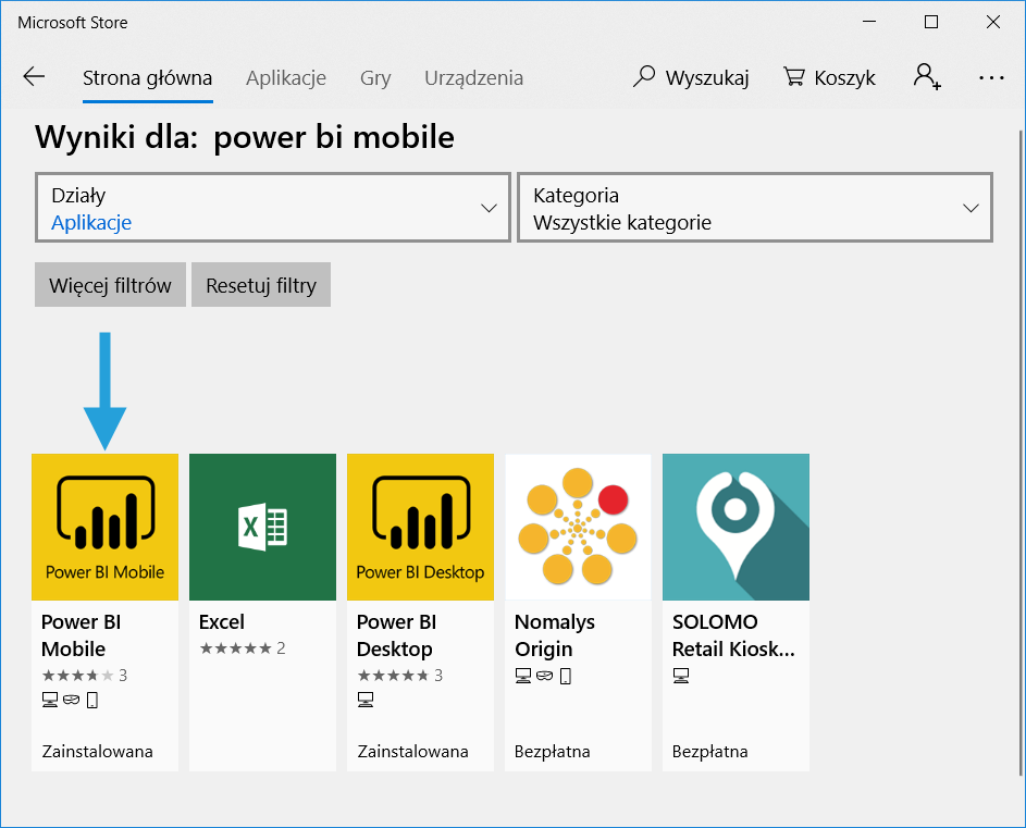 Dla firm, które będą korzystać z dużych ekranów dotykowych od Microsoft pod marką Surface, polecana jest aplikacja Power BI Mobile na Windows 10. Możesz pobrać ją za darmo z Microsoft Store.