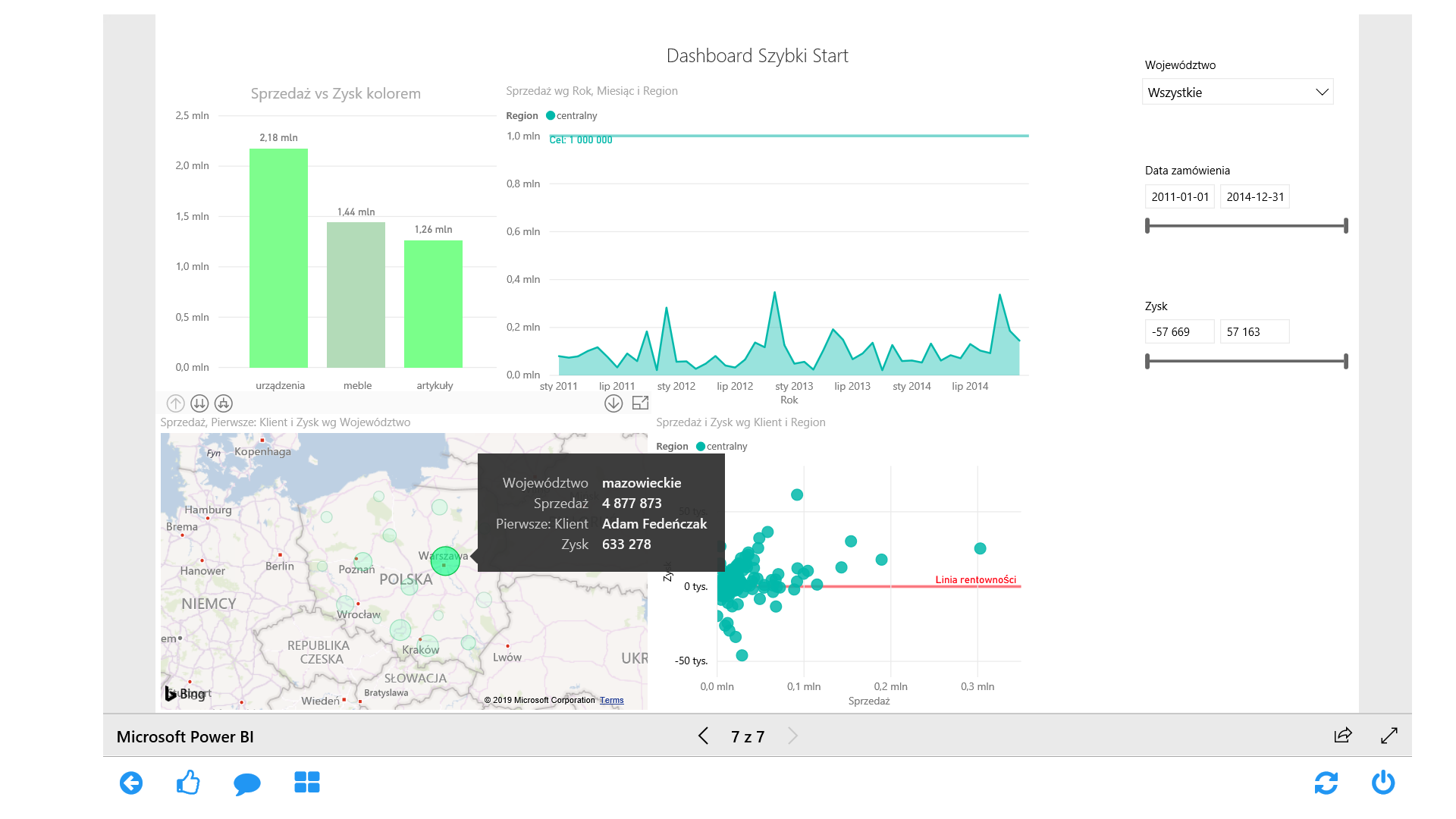 A tak wygląda raport w trybie prezentacji – mamy pełną interaktywność.