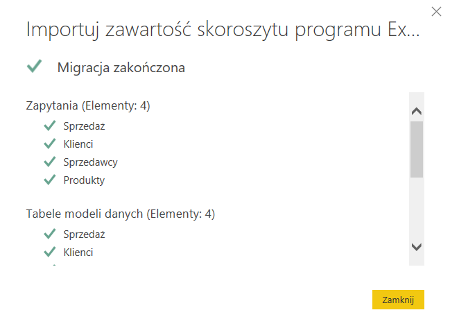 Importuj model danych z Excela do Power BI Desktop