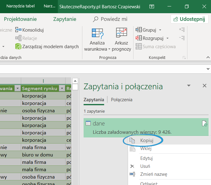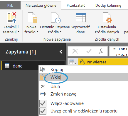 Kopiuj-wklej zapytanie pomiędzy Power Query