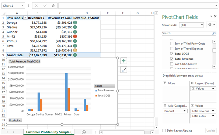 Raport pracuje jak zwykła tabela przestawna.