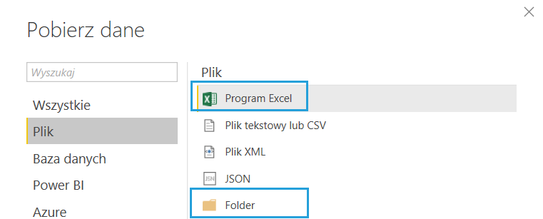 Pobieranie danych z pliku Excel (lub z folderu z plikami Excel)