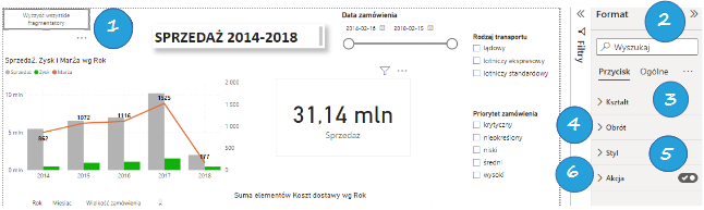 Ma on na celu działanie optymalizacyjne. Tworząc ten przycisk, możemy jednorazowo wybrać kilka filtrów na danych fragmentatorach. Po kliknięciu lewym przyciskiem myszy wraz z Ctrl (dot. Power BI Desktop) na „Zastosuj wszystkie fragmentatory”, Power BI pokaże zaktualizowany dashboard za jednym razem. Dzięki temu nie będzie go odświeżał przy każdorazowym zaznaczeniu różnych filtrów do momentu ich finalnego zatwierdzenia. Też przydatna opcja 🙂