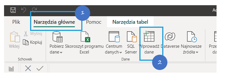 Najprościej będzie dokonać tego przez opcję Wprowadź dane z paska Narzędzia Główne.