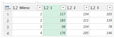 - Zmieniam nazw dwóch pierwszych kolumn na: Wiersz, Kolumna co też kończy całą operację zmian na tej tablicy.
