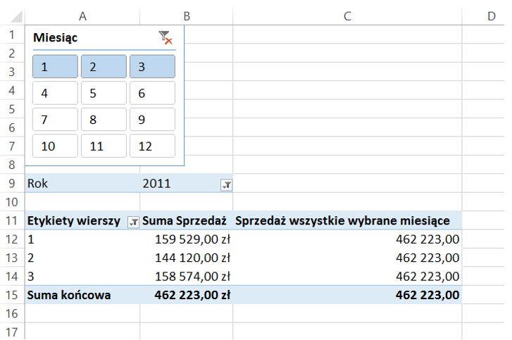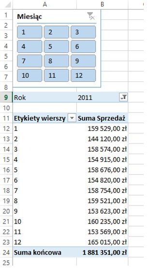 Wybierzmy pojedynczy rok, np. 2011 i dodajmy fragmentator pozwalający na wybór miesiąca: