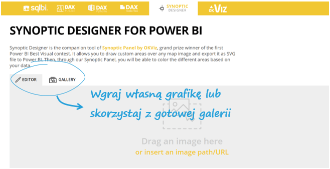 Power BI umożliwia nie tylko wykorzystanie pełnej gamy wbudowanej wizualizacji typu wykresy lub mapy, ale także pozwala wgrać własne obrazy i na nich prezentować dane. Jednym z lepszych narzędzi współpracujących z Power BI jest Synoptic Panel by OKViz oraz Synoptic Designer. W Synoptic Designer przygotujesz mapę w formacie SVG obsługiwanym przez nakładkę Power BI Synoptic Panel. Dzięki temu Power BI połączy dane z obrazem i przedstawi je w odpowiednim miejscu.