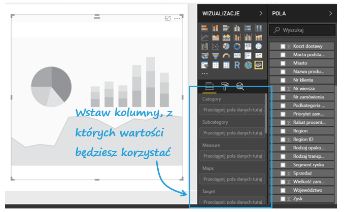 Załaduj do Power BI dane, z których będziesz korzystać, a następnie kliknij w ikonkę Synoptic Panel. W panelu Wizualizacje pojawi się możliwość dodania danych, z których będzie korzystał Power BI.