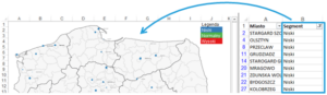 W poprzednim odcinku Mapa Polski Excel – Jak przedstawić na mapie bazę adresów po geokodowaniu? doszliśmy do umieszczenia danych na mapie. Teraz zajmiemy się podziałem punktów wg kategorii, które na mapie zostaną rozróżnione za pomocą koloru.