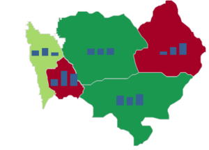 Po wykonaniu tej operacji dla wszystkich wykresów oraz utworzenia kartogramu w tle, mapa będzie wyglądać tak: Mapa Polski Excel – Jak utworzyć kartodiagram kolumnowy z użyciem formatowania warunkowego 8