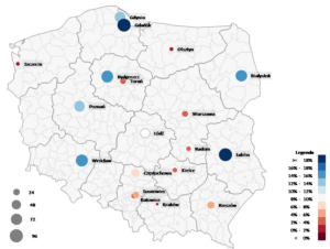 W odcinku 1o cyklu Mapa Polski Excel – Jak przedstawić na mapie oddziałów jednocześnie dwie zmienne – sprzedaż i zysk? poznaliśmy sposób na wizualizację na mapie dwóch zjawisk na raz. Teraz dowiemy się, jak wykorzystać wykres bąbelkowy do sprawdzenia lokalizacji i wizualizacji danych dla tych punktów. Zanim to nastąpi, określimy, gdzie te punkty leżą.