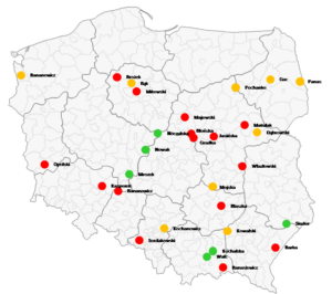 W poprzednim odcinku cyklu Mapa Polski Excel wykorzystaliśmy sygnalizację uliczną do stworzenia raportu pokazującego wykonanie celu („targetu”) przez pracowników sprzedaży. W tym odcinku dowiemy się, jak zwiększyć liczbę przedziałów, aby dodać do mapy dwunasty kolor. Liczba przedziałów jest ustawiona domyślnie na 11. Wynika to z faktu, że oko ludzkie jest w stanie odróżnić bez problemu 5-6 odcieni tego samego koloru, co jest wykorzystywane dla domyślnie ustawionej legendy czerwono-niebieskiej. Czasami chcielibyśmy jednak wykorzystać program do oznaczenia różnych obszarów wieloma kolorami i wówczas 11 może okazać się za mało. Oto więc instrukcja zwiększania liczby przedziałów na przykładzie Mapy Polski Excel Powiaty.
