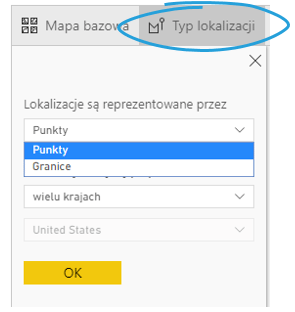 • Tylko lokalizacja ­nakreślenie punktów danych lub wypełnionych granic na podstawie ustawień w opcji Typ lokalizacji