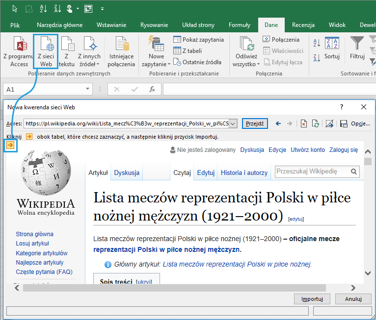 Przygotowując dane do infografiki „Polska najwyżej w historii w rankingu FIFA”, łączyłem się ze stronami internetowymi Wikipedii i FIFA. Gdybym nie znał Power Query i korzystał ze standardowych możliwości programu Excel, zebranie danych zajęłoby mi godziny, a nie kilka minut. Czym mechanizm pobierania danych z sieci Web w Power Query różni się od standardowej opcji Pobierz dane z sieci Web?
