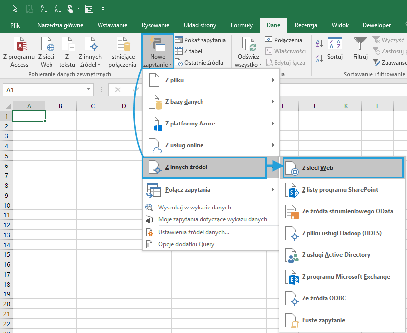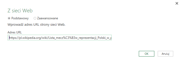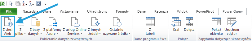 Pobieranie danych z sieci Web poprzez Power Query
