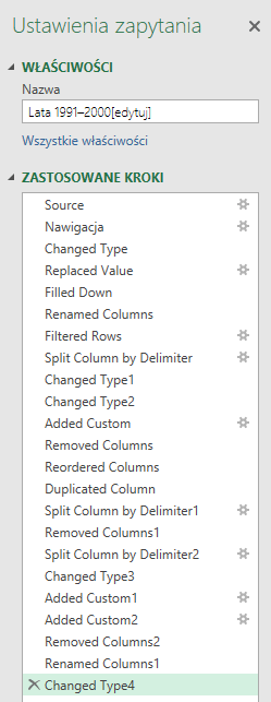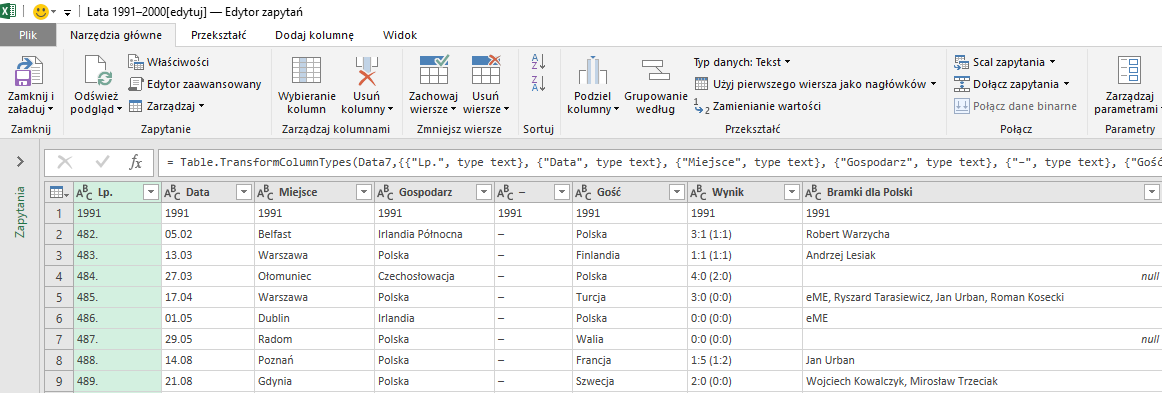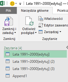 Po wybraniu opcji Edytuj wczytujemy dane do Query i rozpoczynamy obróbkę danych.