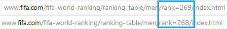Podana tu technika ma zastosowanie tylko w sytuacji, gdy pomiędzy pojedynczymi stronami istnieje różnica w adresach stron, którą możemy w jakiś sposób zdefiniować. W przypadku strony FIFA zmienia się numer rankingu w odnośniku.