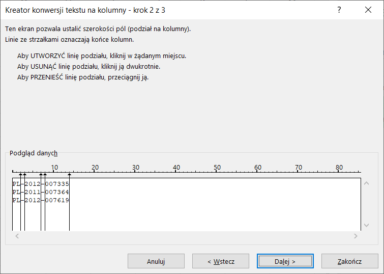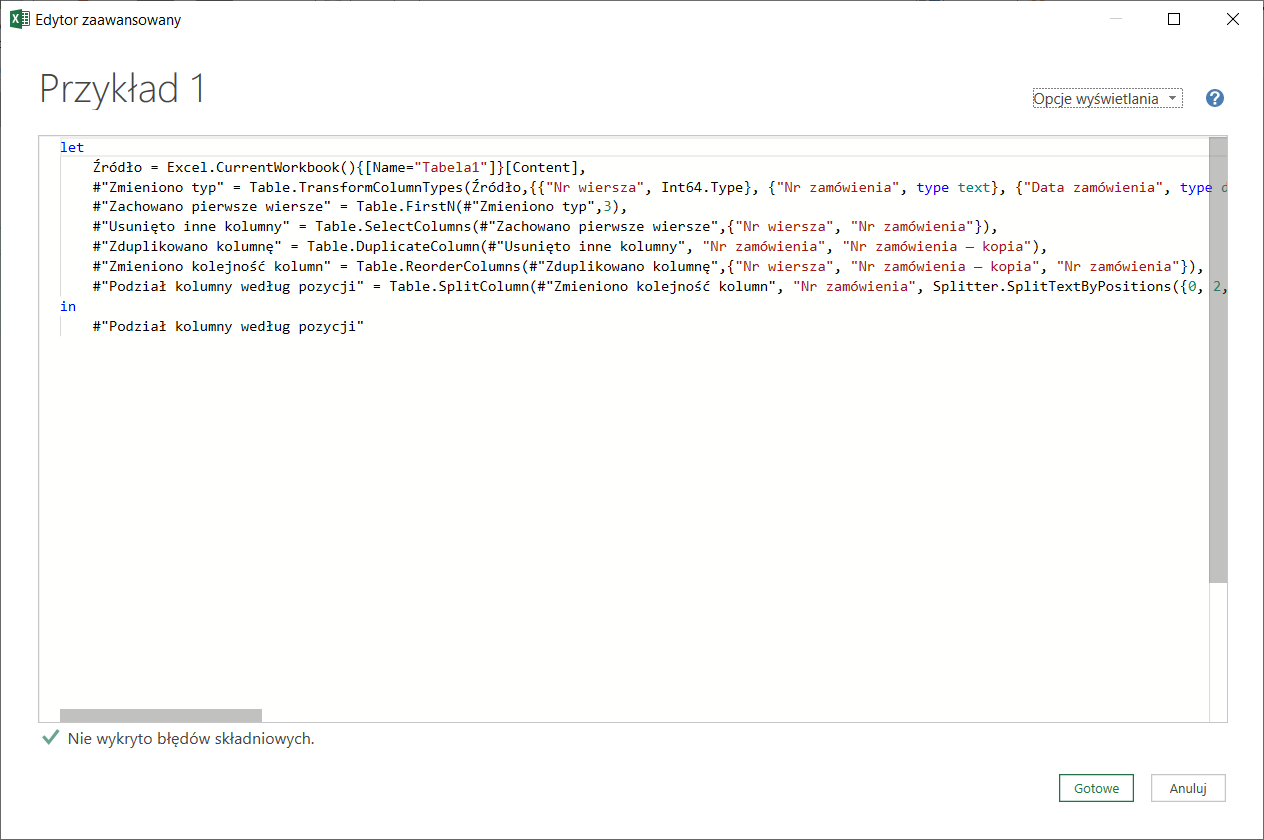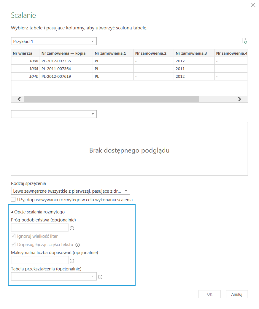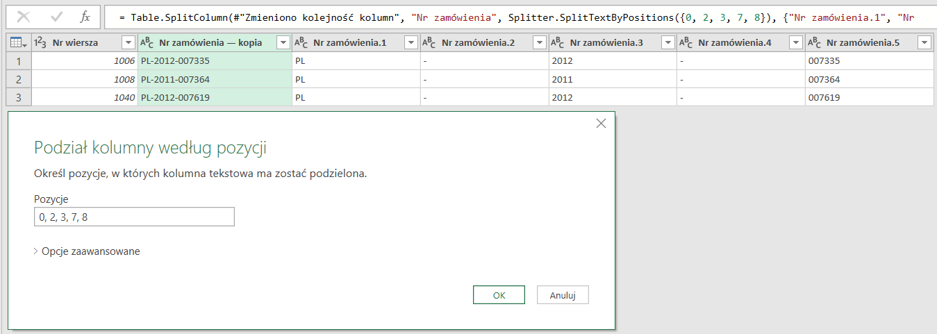 Inny przykładowy scenariusz to próba zamiany jednej kolumny na kilka wierszy, która dostępna jest w opcjach zaawansowanych.