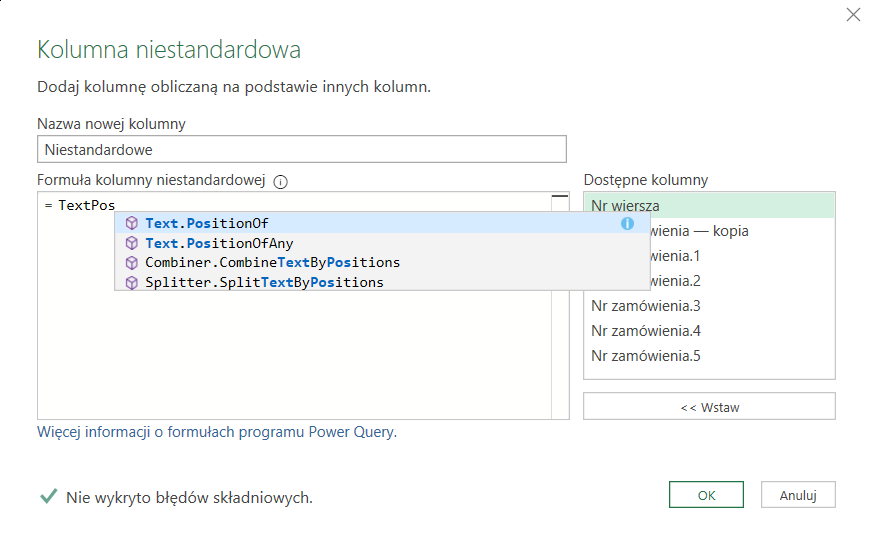 Podpowiedzi w pisaniu formuł i sprawdzaniu poprawności